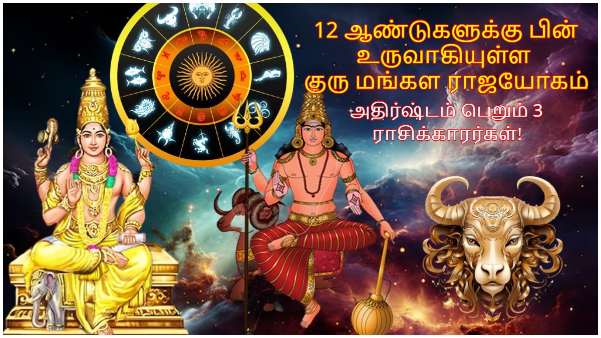 அந்த வகையில் மங்களகரமான கிரகமான குரு தற்போது ரிஷப ராசியில் பயணித்து வருகிறார். இந்நிலையில் செவ்வாய் ஜூலை 12 ஆம் தேதி ரிஷப ராசிக்குள் நுழைந்தார். இதனால் ரிஷப ராசியில் குரு மற்றும் செவ்வாய் ஒன்றிணைந்து குரு மங்கள ராஜயோகத்தை உருவாக்கியுள்ளனர். இந்த ராஜயோகமானது சுமார் 12 ஆண்டுகளுக்கு பின் உருவாகியுள்ளது.