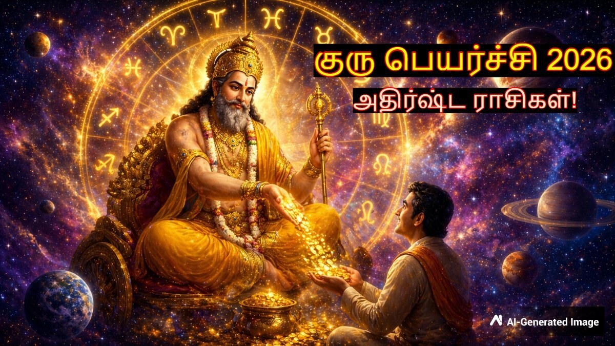 Guru Peyarchi 2026: ஜோதிடத்தில் தேவர்களின் குருவாக கருதப்படுபவர் குரு பகவான். இந்த குரு பகவான் தனுசு மற்றும் மீன ராசிகளின் அதிபதியாவார் மற்றும் இவர் ஒரு ராசியில் 1 ஆண்டு காலம் வரை இருப்பார். தற்போது குரு பகவான் மிதுன ராசியில் பயணித்து வருகிறார். இந்நிலையில் குரு பகவான் ஜூன் 02 ஆம் தேதி மிதுன ராசியில் இருந்து கடக ராசிக்குள் நுழையவுள்ளார்.