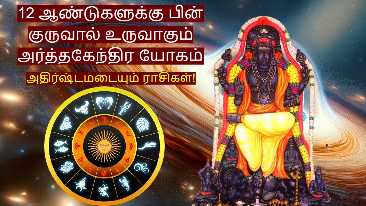 Jupiter Mercury Make Ardhakendra Yog 2025: வேத ஜோதிடத்தின் படி, கிரகங்கள் ஒவ்வொன்றும் ஒரு குறிப்பிட்ட கால இடைவெளியில் ராசியை மாற்றி, ஒவ்வொருவரது வாழ்க்கையிலும் நேர்மறை அல்லது எதிர்மறை தாக்கத்தை ஏற்படுத்தும். மேலும் கிரகங்களின் ராசி மாற்றங்களின் போது, சில சமயங்களில் சுப அல்லது அசுப யோகங்கள் உருவாகி, அவையும் மனித வாழ்க்கையில் தாக்கத்தை ஏற்படுத்தும்.