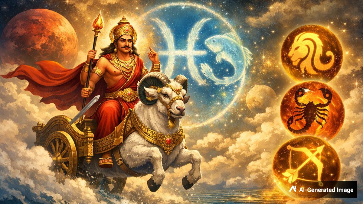 Mars Transit In Pisces 2026: ஜோதிடத்தின் படி, நவகிரகங்களின் தளபதியாக கருதப்படுபவர் செவ்வாய். இந்த செவ்வாய் தைரியம், வீரம், வலிமை, துணிச்சல் ஆகியவற்றின் காரணியாவார். மேஷம் மற்றும் விருச்சிக ராசிகளின் அதிபதியான செவ்வாய் ஒரு ராசியில் 45 நாட்கள் வரை இருப்பார்.