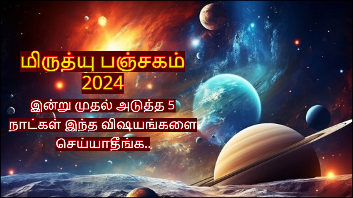 Mrityu Panchagam 2024: ஜோதிட சாஸ்திரத்தின் படி மிருத்யு பஞ்சக காலம் அசுபமானதாக கருதப்படுகிறது. இந்த மிருத்யு பஞ்சக காலமானது சந்திரனின் நிலையால் தீர்மானிக்கப்படுகிறது. ஜோதிடத்தின் படி சந்திரன் ஒவ்வொரு 2 1/2 நாட்களுக்கும் ஒருமுறை ராசியைம், ஒவ்வொரு நாளும் நட்சத்திரத்தையும் மாற்றும். அப்படி மாறும் போது அதன் தாக்கம் அனைத்து ராசிகளிலுமே காணப்படும்.