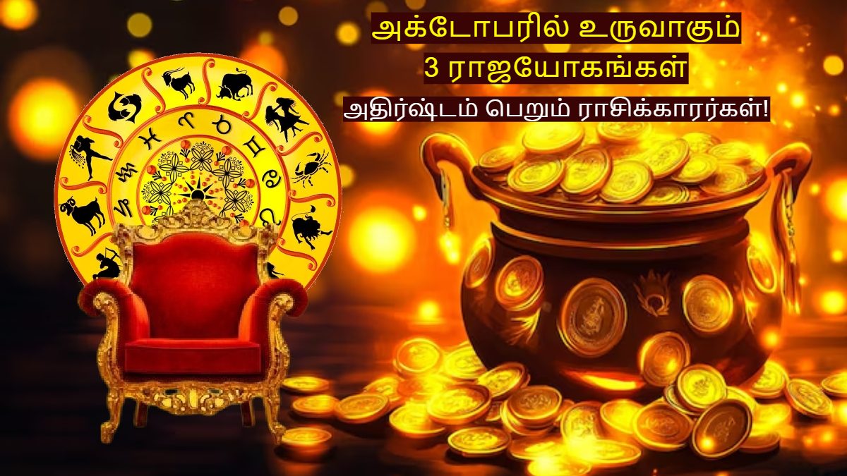 முக்கியமாக 3 ராசிக்காரர்கள் சிறப்பான பலன்களைப் பெறவுள்ளனர். அதுவும் அந்த ராசிக்காரர்களின் அதிர்ஷ்டம் பிரகாசித்து, வருமானத்தில் உயர்வு, தொழிலில் முன்னேற்றம் ஏற்படும் வாய்ப்புக்கள் உள்ளன. இப்போது அக்டோபரில் உருவாகும் 3 ராஜயோகங்களால் அதிர்ஷ்டம் பெறும் ராசிக்காரர்கள் யார்யார் என்பதைக் காண்போம்.