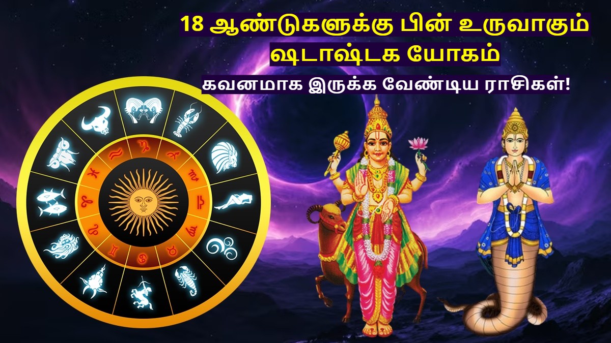 Shadashtak Yog 2025: ஜோதிடத்தின் படி, கிரகங்கள் அவ்வப்போது ராசியை மாற்றுவதோடு, மற்ற கிரகங்களுடன் ஒன்றிணைந்தோ அல்லது அதன் நிலைகளாலோ சுப அல்லது அசுப யோகங்கள் உருவாகின்றன. இந்த யோகங்களின் தாக்கம் மேஷம் முதல் மீனம் வரையிலான அனைத்து ராசிக்காரர்களின் வாழ்க்கையிலும் தெரியும்.