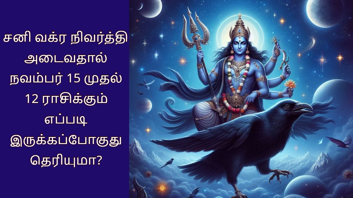 இந்நிலையில் வருகிற நவம்பர் 15 ஆம் தேதி சனி பகவான் வக்ர நிவர்த்தி அடைந்து, தனது மூலதிரிகோண ராசியான கும்ப ராசியில் நேர்கதியில் பயணிக்கவுள்ளார். சனி வக்ர நிவர்த்தி அடைவதால் அதன் தாக்கம் அனைத்து ராசிகளிலுமே காணப்படும். அதில் சிலருக்கு அதிர்ஷ்டமாகவும், சிலருக்கு மோசமாகவும் இருக்கலாம். இப்போது சனி வக்ர நிவர்த்தி அடைவதால் 12 ராசிக்காரர்களுக்கும் எப்படி இருக்கப் போகிறது என்பதைக் காண்போம்.