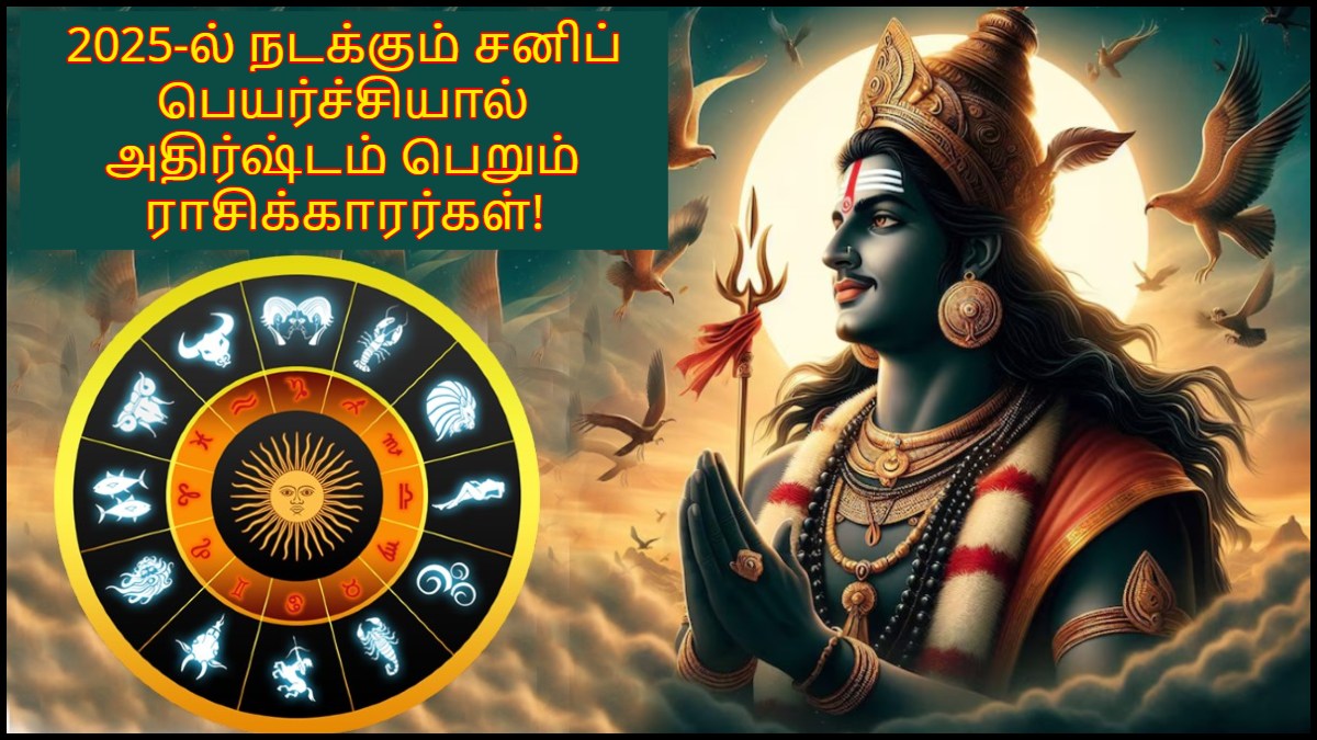 இந்த குரு பகவானின் ராசிக்கு செல்லும் சனி பகவானின் தாக்கம் அனைத்து ராசிகளிலுமே காணப்படும். அதில் சில ராசிக்காரர்களுக்கு அதிர்ஷ்டமாகவும், சிலருக்கு மோசமாகவும் இருக்கலாம். சனி பகவான் இந்த மீன ராசியில் 2027 ஜூன் 03 ஆம் தேதி வரை இருப்பார். இப்போது 2025-ல் நடக்கும் சனிப்பெயர்ச்சியால் எந்த ராசிக்காரர்களுக்கு அதிர்ஷ்டமாக இருக்கும் என்பதைக் காண்போம்.