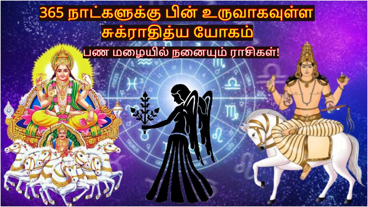 இந்த கன்னி ராசியின் அதிபதி புதன். இந்த கன்னி ராசியில் ஏற்கனவே செல்வத்தின் காரணியாக கருதப்படும் சுக்கிரன் பயணித்து வருகிறார். இப்படிப்பட்ட சூழ்நிலையில் சூரியன் கன்னி ராசிக்குள் நுழையும் போது சுக்கிரனுடன் சேர்ந்து சுக்ராதித்ய யோகம் உருவாகவுள்ளது. இந்த யோகம் சுமார் 365 நாட்கள், அதாவது ஒரு வருடம் கழித்து உருவாகவுள்ளது.