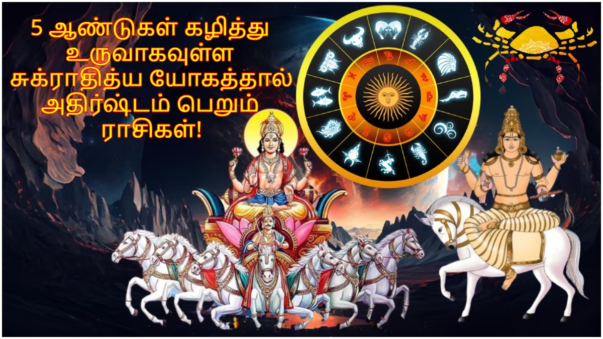 Sukraditya Yog 2024 In Cancer After 5 Years: ஜோதிடத்தின் படி கிரகங்கள் ஒவ்வொன்றும் மனித வாழ்க்கையில் தாக்கத்தை ஏற்படுத்தும். அதுவும் கிரகங்கள் சீரான இடைவெளியில் ராசியை மாற்றுவதைத் தவிர, மற்ற கிரகங்களுடன் இணைந்து சுப அல்லது அசுப யோகங்களையும் உருவாக்கும். அவ்வாறும் உருவாக்கும் யோகங்கள் மனித வாழ்க்கையிலும் தாக்கத்தை உண்டாக்கும்.