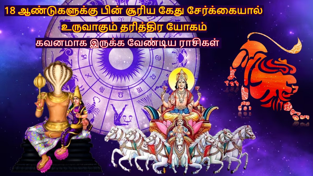 இதனால் இந்த யோகத்தால் பெரிய விபத்தோ, கொந்தளிப்போ ஏற்படலாம். முக்கியமாக 5 ராசிக்காரர்கள் இந்த யோகத்தால் பல மோசமான விளைவுகளை சந்திக்க போகிறார்கள். இப்போது சூரிய கேது சேர்க்கையால் உருவாகும் தரித்திர யோகத்தால் எச்சரிக்கையாக இருக்க வேண்டிய ராசிக்காரர்கள் யார்யார் என்பதைக் காண்போம்.