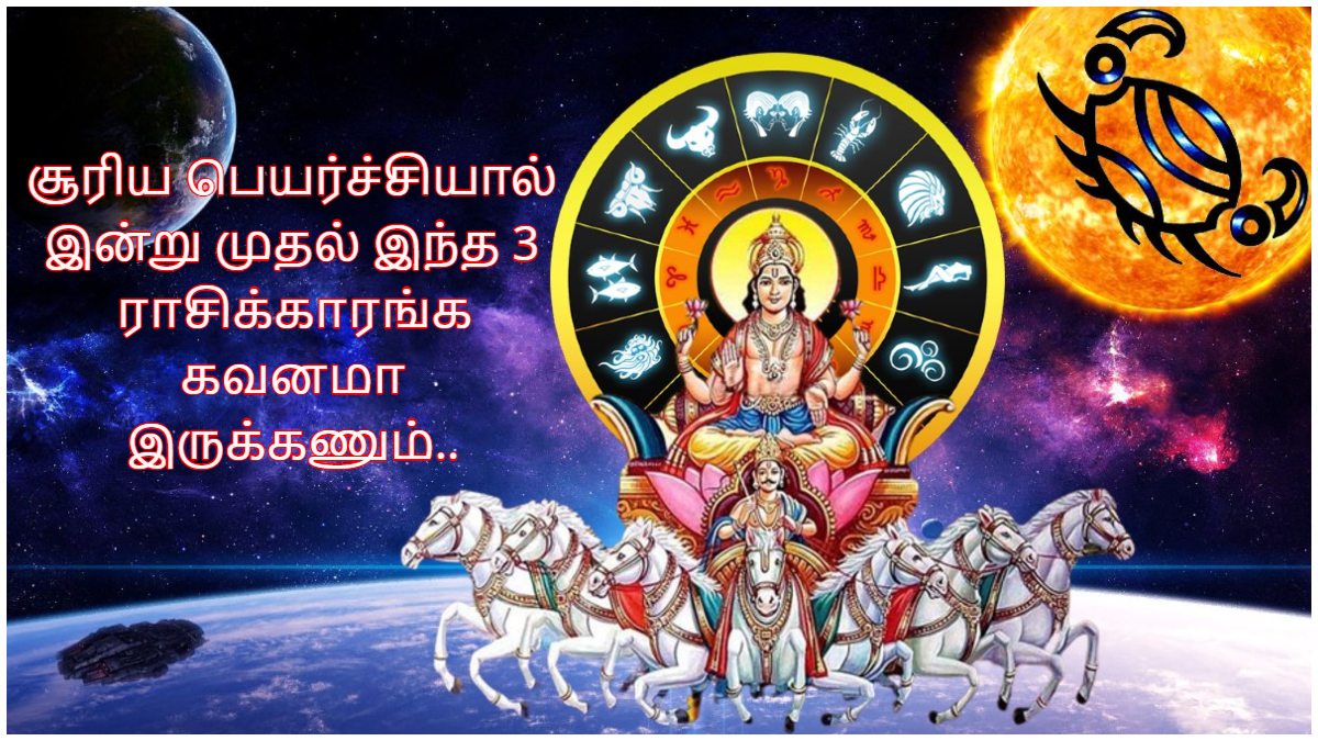 சூரிய பெயர்ச்சியால் இன்று முதல் அடுத்த ஒரு மாதம் இந்த 3 ராசிக்காரங்க கவனமா இருக்கணும்.. உங்க ராசி இதுல இருக்கா