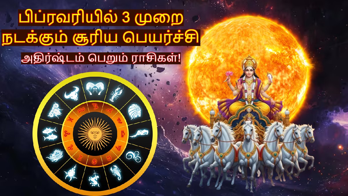 Sun Transit Three Times In February 2026: ஜோதிடத்தில் கிரகங்களின் தலைவனாக கருதப்படுபவர் சூரியன். இந்த சூரியன் மரியாதை, கௌரவத்தின் காரணியாவார். மேலும் இவர் சிம்ம ராசியின் அதிபதியும் கூட. இந்த சூரியன் மாதம் ஒருமுறை ராசியை மாற்றுவார். அதோடு அவ்வப்போது நட்சத்திரத்தையும் மாற்றுவார். அப்படி சூரியனின் நிலையில் மாற்றம் ஏற்படும் போதெல்லாம் அதன் தாக்கம் அனைத்து ராசிக்காரர்களின் வாழ்க்கையிலும் காணப்படும்.