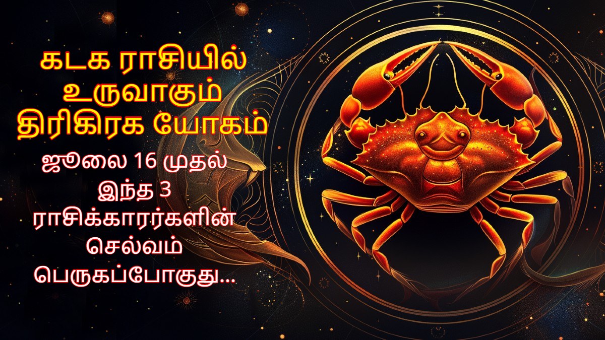இதனால் ஜூலை 16 முதல் இந்த மூன்று கிரகங்களின் சேர்க்கையால் கடக ராசியில் திரிகிரக யோகம் உருவாகவுள்ளது. இந்த யோகமானது மிகவும் மங்களகரகமான யோகமாகும். இந்த யோகத்தால் சில ராசிக்காரர்களுக்கு மிகவும் அதிர்ஷ்டமாக இருக்கப் போகிறது. முக்கியமாக நிதி நிலையில் உயர்வு ஏற்படவுள்ளது. இப்போது கடக ராசியில் உருவாகும் திரிகிரக யோகத்தால் அதிர்ஷ்டம் பெறும் ராசிக்காரர்கள் யார்யார் என்பதைக் காண்போம்.