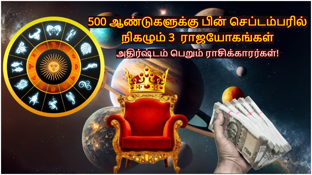 500 ஆண்டுகளுக்கு பின் செப்டம்பரில் நிகழும் 3 ராஜயோகங்கள்: இந்த 4 ராசிக்கு கூரையை பிச்சு பணம் கொட்டபோகுது!
