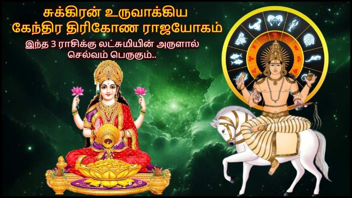 ஜோதிடத்தின் படி, சுக்கிரன் கேந்திரத்தில் அதாவது 4, 7, 10 ஆம் வீடு மற்றும் திரிகோணத்தில் 5, 9, 1 ஆம் வீட்டில் அமைந்தால் இந்த கேந்திர திரிகோண ராஜயோகம் உருவாகும். இப்போது சுக்கிரனால் உருவாகியுள்ள கேந்திர திரிகோண ராஜயோகத்தால் லட்சுமி தேவியின் ஆசியைப் பெறும் ராசிக்காரர்கள் யார்யார் என்பதைக் காண்போம்.