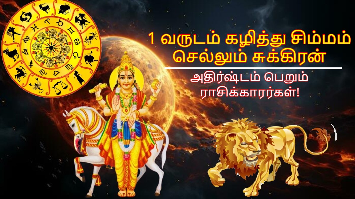 அந்த வகையில் சுக்கிரன் வருகிற செப்டம்பர் மாதத்தில் சூரிய பகவானின் சிம்ம ராசிக்குள் நுழையவுள்ளார். சிம்ம ராசிக்கு சுக்கிரன் 1 வருடத்திற்கு பின் செல்லவுள்ளார். மேலும் இந்த சுக்கிர பெயர்ச்சியின் தாக்கம் மேஷம் முதல் மீனம் வரையிலான 12 ராசிக்காரர்களின் வாழ்க்கையிலும் காணப்படும். குறிப்பாக 3 ராசிக்காரர்கள் இந்த சுக்கிர பெயர்ச்சியால் சிறப்பான பலன்களைப் பெறவுள்ளனர்.