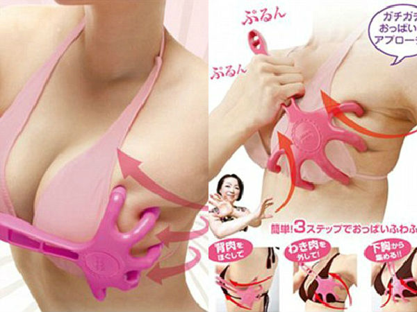 மனித கை போல இருக்கும் இந்த ஸ்டிக், மார்பக மசாஜ் கருவியாம். மார்பகத்தின் தசைகளுக்கு பயிற்சி தர இதை பயன்படுத்துகிறார்கள். அழகான மார்பக தோற்றம் பெற இதை உபயோகப்படுத்துகிறார்கள். இதன் விலை $52 டாலர்கள் மற்றும் இதன் பெயர் Breast Gymnastic hand massager.