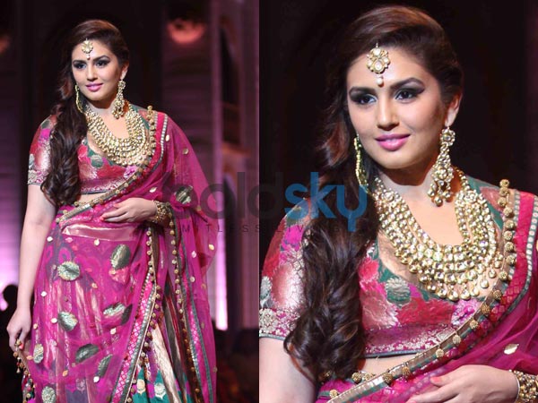 ஹூமா குரேஷி, பாரம்பரிய தோற்றத்தைக் கொடுக்கும் பலவண்ணம் கொண்ட ப்ரில் லெஹெங்காவை அணிந்து, அஷிமா மற்றும் லீனா அவர்களுக்கு ஷோஸ்டாப்பராக ராம்ப் வாக் நடந்து வந்தார்.