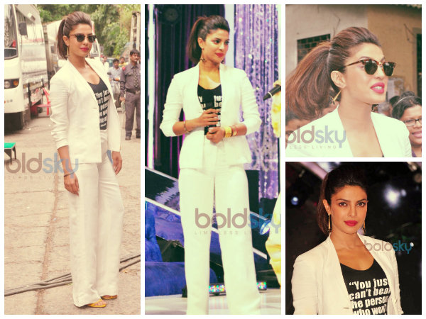 அதற்காக அவர் இந்தியில் நடைபெற்றுக் கொண்டிருக்கும் நிகழ்ச்சி ஒன்றிற்கு வெள்ளை நிற கோட்சூட்டில் மிகவும் ஸ்டைலாக வந்திருந்தார். மேலும் அவர் அந்த கோட்சூட்டிற்கு மேற்கொண்ட ஸ்டைல் அற்புதமாக இருந்தது. சரி, இப்போது பிரியங்கா சோப்ரவின் அந்த ஸ்டைலைப் பார்ப்போமா!!!