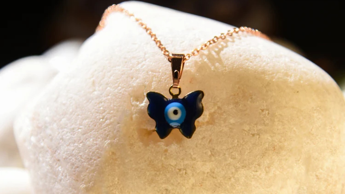Evil Eye Butterfly Pendant Benefits: கண் திருஷ்டி பற்றி பலரும் கேள்விபட்டிருப்பீர்கள். கண் திருஷ்டி என்பது மற்றவர்களின் பொறாமை மற்றும் தீய பார்வையால் எதிலும் தோல்வி மற்றும் பலவிதமான பிரச்சனைகளை வாழ்வில் சந்திக்க நேரிடும். நிறைய பேர் இதை வெறும் ஒரு மூடநம்பிக்கையாக கருதுகிறார்கள். ஆனால் இன்னும் சில இதை தீவிரமாக எடுத்துக் கொண்டு, அந்த கண் திருஷ்டி படாமல் இருக்க பரிகாரங்களை செய்வது அல்லது வேறுசில பாதுகாப்பு கவசங்களை அணிந்து வருகிறார்கள்.