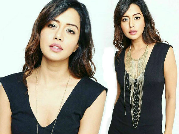 கேசுவல் டார்க் ப்ளூ டாப்ஸ் உடையில் ஃபேஷன் செயின் அணிந்து கொள்ளை அழகுடன் ரைசா வில்சன்.
