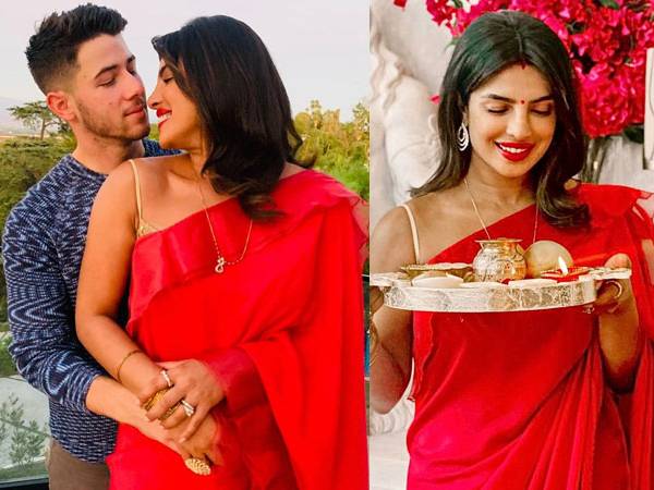 இது இவர்கள் திருமணமாகி கொண்டாடும் இரண்டாவது கர்வா சவுத் பண்டிகை ஆகும். இந்த பண்டிகை அன்று பிரியங்கா சோப்ரா பாரம்பரிய உடையான புடவையை அணிந்திருந்தார். அதுவும் சிவப்பு நிற புடவை அணிந்து, அதற்கு செக்ஸியான ஜாக்கெட் போட்டிருந்தார். இந்த சிவப்பு நிற புடவையில் தனது கணவருடன் சேர்ந்த எடுத்த போட்டோக்களை தனது சமூக வலைத்தள பக்கத்திலும் பகிர்ந்துள்ளார். கீழே 2020 கர்வா சவுத் பண்டிகையின் போது பிரியங்கா சோப்ரா எடுத்த போட்டோக்கள் மற்றும் ஸ்டைல்கள் கொடுக்கப்பட்டுள்ளது.