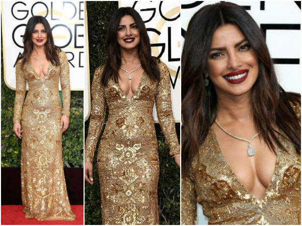 ஹாலிவுட் நடிகைகளுக்கு இணையாக பிரியங்கா சோப்ராவும், கவர்ச்சிகரமான உடையைத் தேர்ந்தெடுத்தே அணிந்து வருகிறார். அதிலும் கோல்டன் குளோப் விருது விழாவிற்கு பிரியங்கா சோப்ரா அணிந்து வந்த கவுன் சிம்பிளாக இருந்தாலும், படு கவர்ச்சியாக இருந்தது என்று தான் கூற வேண்டும்.