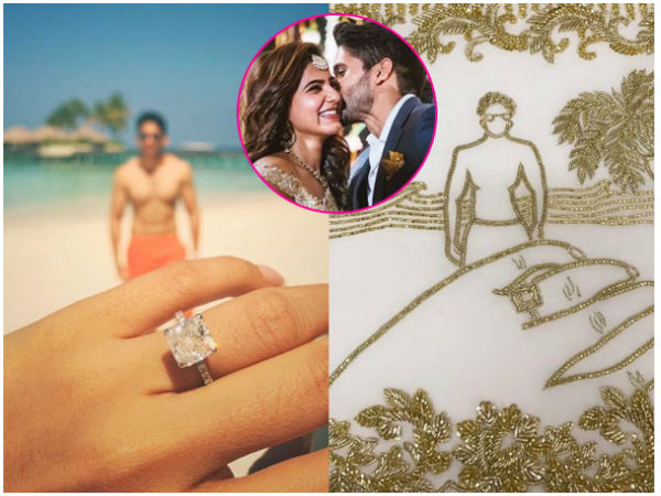 முக்கியமாக இந்த நிச்சயதார்த்த புடவையில், கடற்கரை ஒன்றில் நாக சைதன்யா மற்றும் தன் கையில் உள்ள மோதிரத்தை ஒன்றாக சேர்த்து எடுத்த போட்டோவும் இருப்பது குறிப்பிடத்தக்கது.