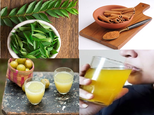 பரிந்துரைக்கப்பட்ட அளவு நெல்லிக்காய் சாறு, இலவங்கப்பட்டை தூள், கறிவேப்பிலை மற்றும் ½ கப் தண்ணீர் ஆகியவற்றை ஒரு பிளெண்டரில் சேர்க்கவும். ஒரு பானத்தை உருவாக்க நன்றாக அரைக்கவும். இந்த சாற்றை, தினமும் காலையில், காலை உணவுக்கு முன் குடிக்கவும். இந்த பானத்தில் சர்க்கரை அல்லது உப்பு சேர்க்க வேண்டாம்.