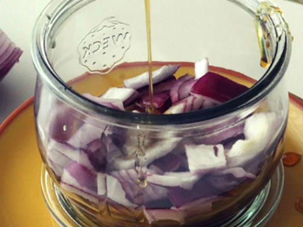 - ஒவ்வொரு ஸ்லைஸ் வெங்காயத்திலும் தேனை ஒரு டீஸ்பூன் அளவு தெளிக்கவும்.