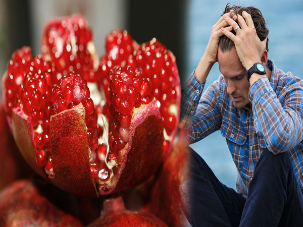 குயின் மார்க்கரேட் பல்கலைக்கழகம் நடத்திய ஆய்வு ஒன்றில், மாதளையை தினமும் ஜூஸாகக் குடித்து வந்தால், மன அழுத்தத்தைக் குறைக்க முடியும். எவ்வளவு ஸ்ட்ரஸ்ஸோ இருந்தாலும் இந்த ஜுஸைக் குடித்தால், உடனே மன அழுத்தம் நீங்கி, உடலுக்குப் புது தெம்பும் புத்துணர்ச்சியும் கிடைக்கும்.