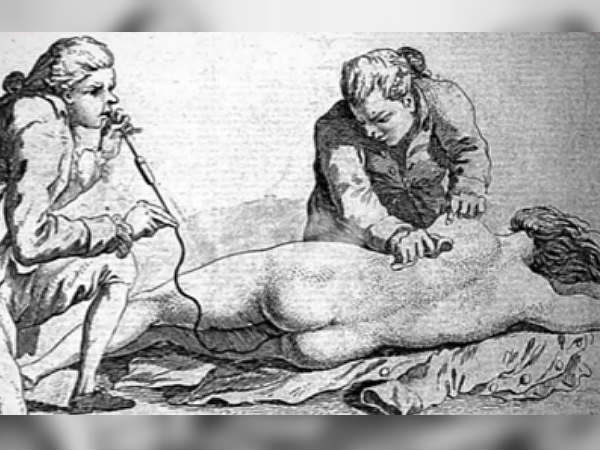 1746-ல் முதன் முதலாக இங்கிலாந்தில் இந்த சம்பவம் நடந்தது. மனைவி நீரில் மூழ்கியதை அடுத்து, அவரது உடலில் ஏறிய நீரை வெளியேற்ற அந்த பெண்மணியின் கணவர் புகையிலை புகையை மல துவாரத்தின் வலியாக எனிமா போல கொடுத்துள்ளார். இது அந்த காலத்தில் பிறகு பிரபலமடைந்த மருத்துவ முறையாக மாறியது வேறு விஷயம்.