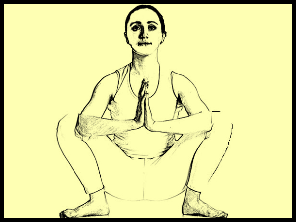 முதலில் காலை நன்றாக விரித்து வைத்து கொள்ளவும். அடுத்து பாதி உட்காரும் நிலைக்கு வர வேண்டும். அதன் பின்னர் கைகளை குவித்து வணக்கம் வைக்க வேண்டும். சுருக்கமாக சொல்ல போனால் பாதி உட்கார்ந்து மலம் கழிக்கும் நிலையில் இருந்து கொண்டு இந்த ஆசனத்தை செய்ய வேண்டுமாம்.