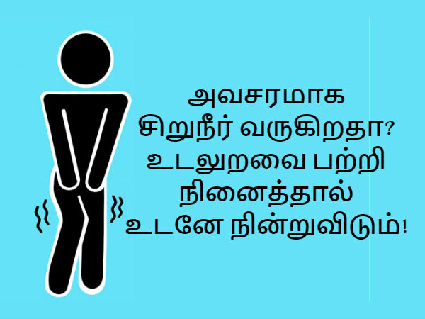 சிறுநீரை அடக்க முடியாமல் தவிக்கும் போது, அருகே பாத்ரூமும் இல்லை என்றால், உடலுறவு பற்றி என்ன துவங்குங்கள். உங்கள் மூளையை திசைத்திருப்பி, சற்று நேரம் சிறுநீர் அவசரத்தின் அழுத்தத்தை கட்டுப்படுத்த முடியும்.