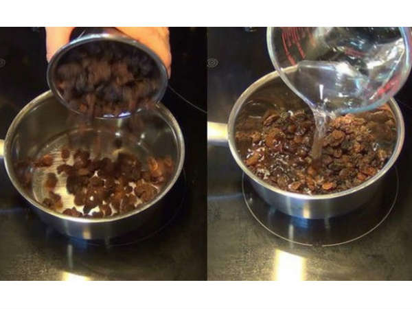 உலர் திராட்சையைப் பயன்படுத்தும் முன் நீரில் 15 நிமிடம் ஊற வைத்து, பின் அதனை நீரில் நன்கு அலசி, தனியாக வைத்துக் கொள்ளவும்.