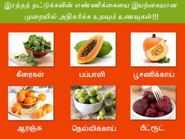 இரத்தத் தட்டுக்களின் எண்ணிக்கையை அதிகரிக்க, அஸ்கார்பிக் அமிலம் என அழைக்கப்படும் வைட்டமின் சி உட்கொள்ளும் அளவை அதிகரிக்க வேண்டும். வைட்டமின் சி உங்கள் இரத்தத் தட்டுக்களின் எண்ணிக்கையை மேம்படுத்தும் என 1990-ல் ஜாப்பனீஸ் ஜர்னல் ஆஃப் ஹீமடாலாஜி வெளியிட்டுள்ள ஆய்வில் கூறியுள்ளது.