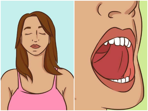 முதலில் கண்களை மூடிக் கொண்டு, நாக்கை வாயின் மேல் கூரையில் தொட வேண்டும். அதுவும் மேல்வாய் பற்களின் பின்புறத்தை நாக்கால் தொட வேண்டும். இந்த நிலையிலேயே இந்த பயிற்சி முழுவதையும் செய்ய வேண்டும்.