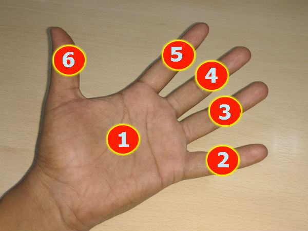 உள்ளங்கை: உங்கள் உள்ளங்கை நரம்பு மண்டலத்துடன் தொடர்புடையது. இங்கு 60 நொடிகள் அழுத்தம் கொடுத்து பயிற்சி செய்வதால், மனநிலையை மேம்பட வைக்கலாம். சாதாரணமாக கைத்தட்டுவது போல பயிற்சி செய்தாலே போதுமானது. இது இரத்த ஓட்டத்தை சீராக்கவும் செய்கிறது.