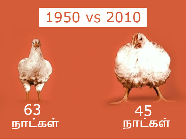 50 வருடங்களுக்கு முன்னர் நாம் சாப்பிட்டுக் கொண்டிருந்த சிக்கனிலும், இன்று நாம் சாப்பிட்டு கொண்டிருக்கும் சிக்கனிலும் பல வேறுபாடுகள் உள்ளன.