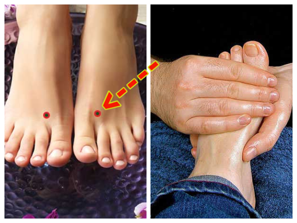 காலின் பெரு விரலுக்கும், நடு விரலுக்கும் இடையில் உள்ள இடத்தில் 2 நிமிடம் அழுத்தம் கொடுத்தால் தலை வலி, பாத வலி போன்ற பல வலிகளில் இருந்து உங்களை விடுதலை பெற செய்யும் வழி இதுதான்.