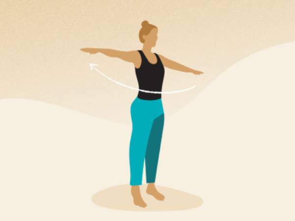 * பின் அதே இடத்தில் நின்று கொண்டே கடிகார சுழற்சியில் சுற்ற வேண்டும். இப்படி சுற்றும் போது தலையைக் குனியாமல், கண்களைத் திறந்து கொண்டு சுற்ற வேண்டும்.