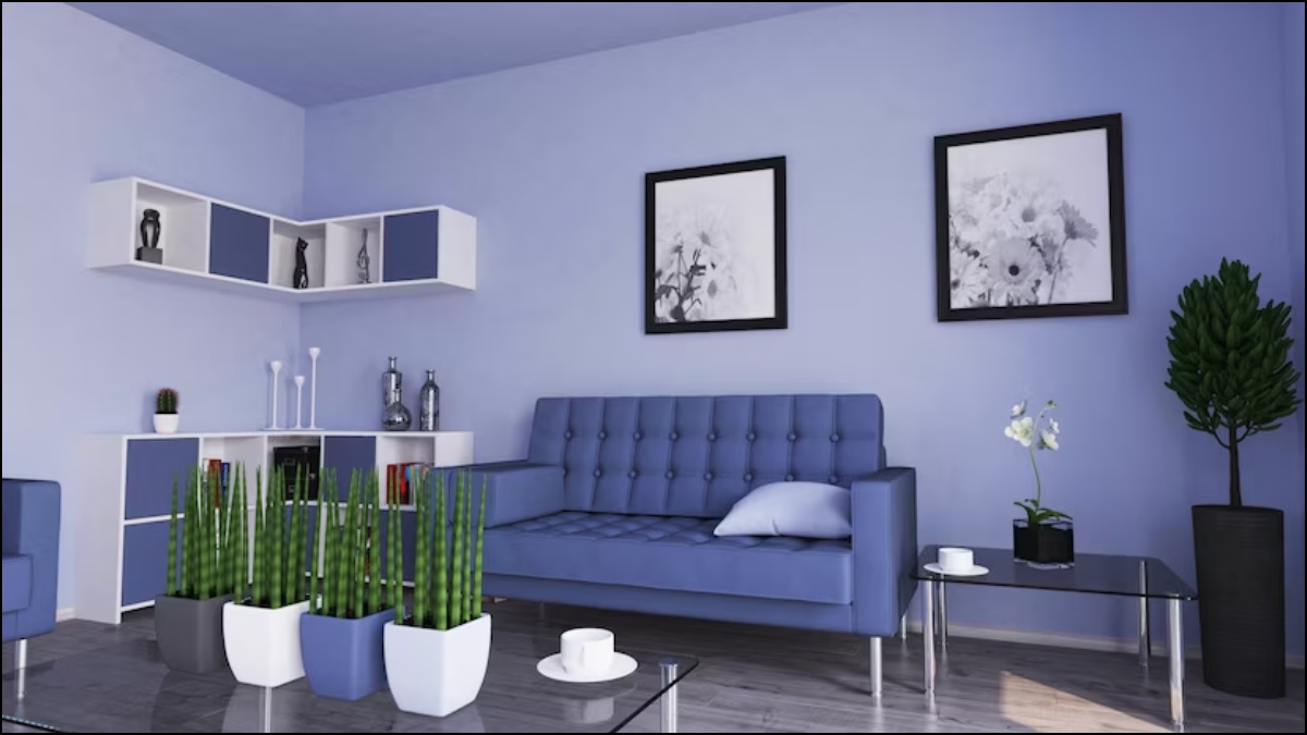 நீல நிறம் உங்கள் மனதை அமைதிப்படுத்தக் கூடிய நிறமாகும். இது நரம்புகளை அமைதிப்படுத்துகிறது. உடலை தளர்த்துகிறது. உங்கள் மனதிற்கு ஓய்வையும் புத்துணர்ச்சியையும் அளிக்க கூடியது. எனவே உங்கள் வீட்டிற்கு நேவி ப்ளு, நீல நிற ஷேட்ஸ் போன்றவற்றை தேர்ந்தெடுத்து பயன்படுத்தலாம்.