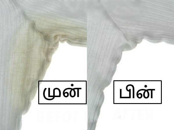 காலையில் எழுந்ததும், முதல் வேலையாக, எப்போதும் நீங்கள் துவைக்கும் முறையில் துவைத்துவிடுங்கள். ஒயிட் வினிகர், கறையை போக்கி உடைகளுக்கு மிருதுவான தன்மை அளிக்கும்.