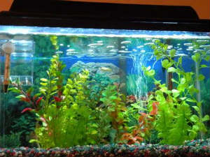 மீன் தொட்டியில் உள்ள செடிகள் நிஜ செடிகளாக இருக்கும் பட்சத்தில் அதிகபட்சம் 12 மணி நேரம் வரை விளக்குகளை எரியவிடலாம். ஏனெனில் செடிகளுக்கு பச்சையத்திற்கு தேவையான ஒளியை அந்த வெளிச்சத்தின் மூலம்தான் பெற்றுக்கொள்ளும் என்பதால் அரைநாள்வரை விளக்குகளை எரியவிடுங்கள். மீன் தொட்டியில் உள்ள செடிகள் செயற்கையானவை என்றால் அதிகநேரம் லைட் எரியத் தேவையில்லை.