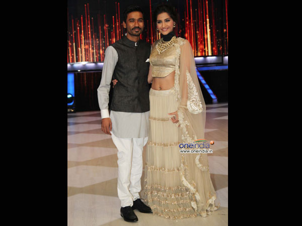 சோனம் கபூர் அணிந்திருக்கும் வெள்ளி மற்றும் தங்க நிற வேலைபாடுகளுடன் கூடிய லெஹெங்கா, அவருக்கு மிகவும் சூப்பராக உள்ளது. அதிலும் இந்த படத்தின் விளம்பரத்திற்காக தனுஷூடன் சேர்ந்து போஸ் கொடுத்திருப்பது இன்னும் சூப்பர்.