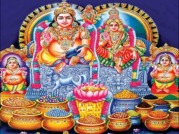 லட்சுமி குபேரர் படத்துக்கு மஞ்சள், குங்குமம் இட வேண்டும். சுவாமி படத்துக்கு முன்பாக தலை வாழையிலை விரித்து, அதில் நவதானியங்களைத் தனித்தனியாகப் பரப்ப வேண்டும். நடுவில் சுத்தமான தண்ணீர் நிரம்பிய சொம்பை வைத்து, தண்ணீரில் சிறிது மஞ்சள் சேர்க்க வேண்டும்.