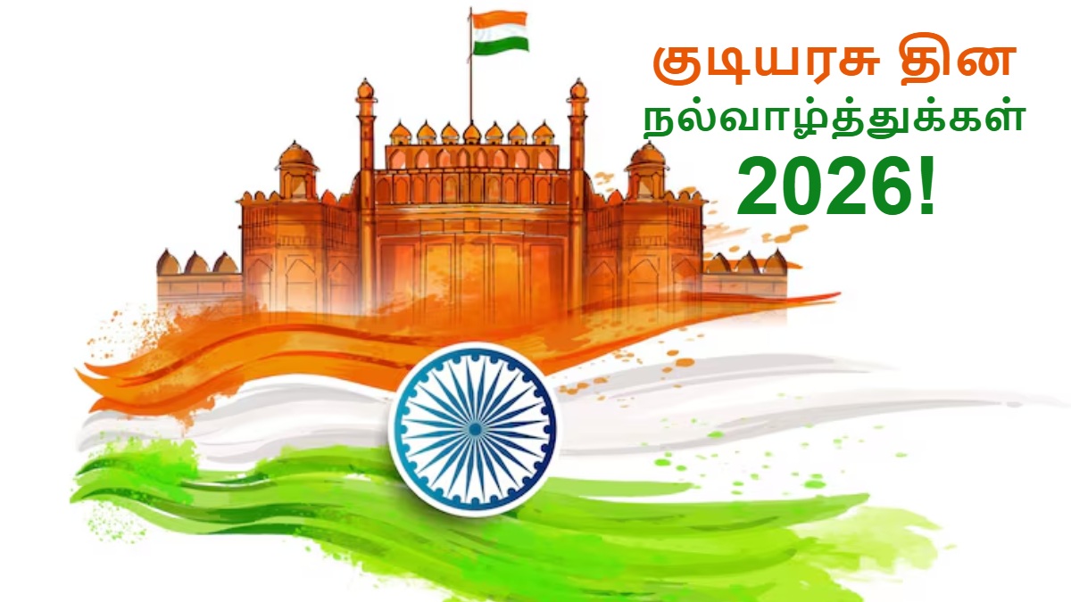 Happy Republic Day 2026 Wishes In Tamil: ஒவ்வொரு ஆண்டும் ஜனவரி 26 ஆம் தேதி இந்தியா தனது குடியரசு தினத்தை மிகவும் கோலாகலமாக கொண்டாடுகிறது என்பதை நாம் அனைவரும் அறிவோம். இந்த ஆண்டு இந்தியா தனது 77 ஆவது குடியரசு தினத்தை கொண்டாடவுள்ளது. இந்த குடியரசு நாளில் தான் இந்தியாவின் அரசியலமைப்பு சட்டம் அமலுக்கு வந்து, இந்தியா ஒரு இறையாண்மை கொண்ட குடியரசு நாடாக மாறியது.