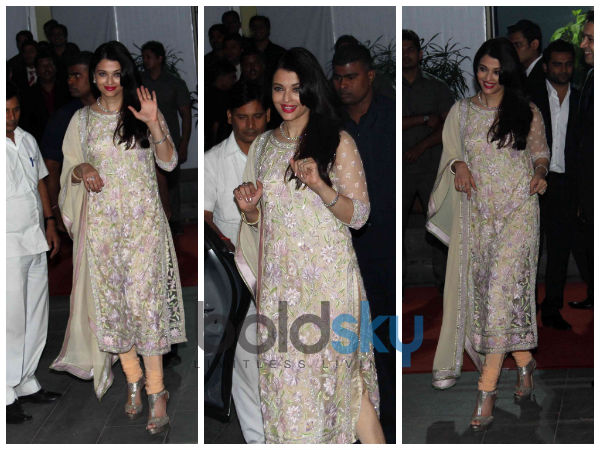 ஐஸ்வர்யா அனார்கலி உடைக்கு அழகான மின்னும் மிகவும் உயரமான ஹை ஹீல்ஸ் அணிந்து வந்திருந்தார்.