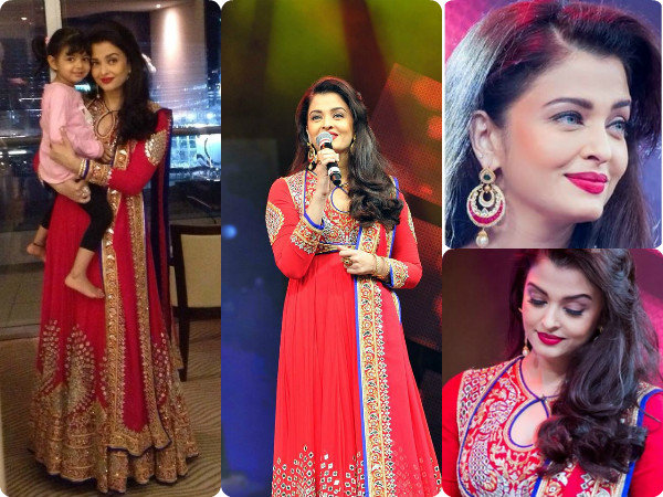 ஐஸ்வர்யா அணிந்து வந்த சிவப்பு நிற அனார்கலியானது அதிக அளவில் எம்பிராய்டரி செய்யப்பட்டது. அதிலும் அந்த உடையில் உள்ள கழுத்து டிசைன் தான் இந்த உடையையே அழகாகவும், ஸ்டைலாகவும் வெளிக்காட்டுகிறது.