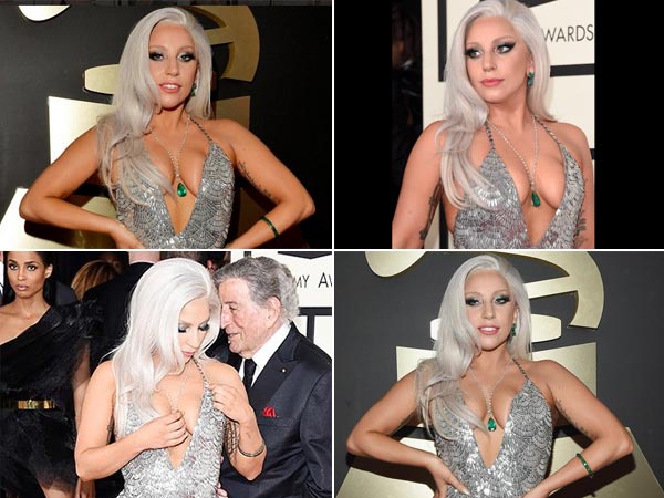 2015 கிராமி விழாவின் போது லேடி காகா படு செக்ஸியான உடை அணிந்து வந்திருந்தார். அப்போது மேடையில் பாடிக் கொண்டிருக்கம் போது, திடீரென்று அவரது உடை நழுவ, உடனே லேடி காகா அதனை சரிசெய்து கொண்டார்.