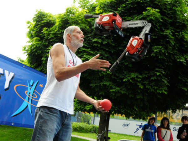 சர்க்கஸ் சென்றால், அங்குள்ள கோமாளிகள் மூன்று பந்துகளை மேலே தூக்கிப் போட்டு பிடித்து விளையாடுவார்கள் அல்லவா? அதேப் போல் ஸ்லோவாகியாவைச் சேர்ந்த மிலன், 2009 ஆம் ஆண்டு ஜூன் மாதம், பந்திற்கு பதிலாக 2-3 மோட்டார் ரம்பத்தை 62 முறை வெற்றிகரமாக தூக்கிப் போட்டு பிடித்துள்ளார். உண்மையிலேயே இந்த சாதனை அனைவரையும் ஆச்சரியப்பட வைத்திருக்கும்.