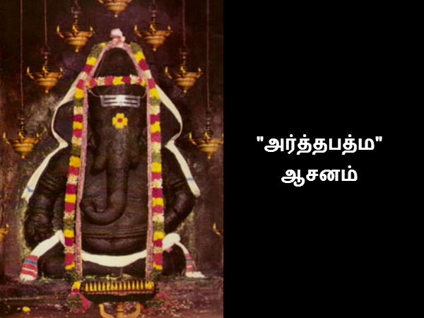 வயிறு, ஆசனத்தில் படியாமல் "அர்த்தபத்ம" ஆசனம், போன்று கால்கள் மடித்திருக்க அமர்ந்தருள்கிறார் பிள்ளையார்பட்டி கற்பக விநாயகர்.